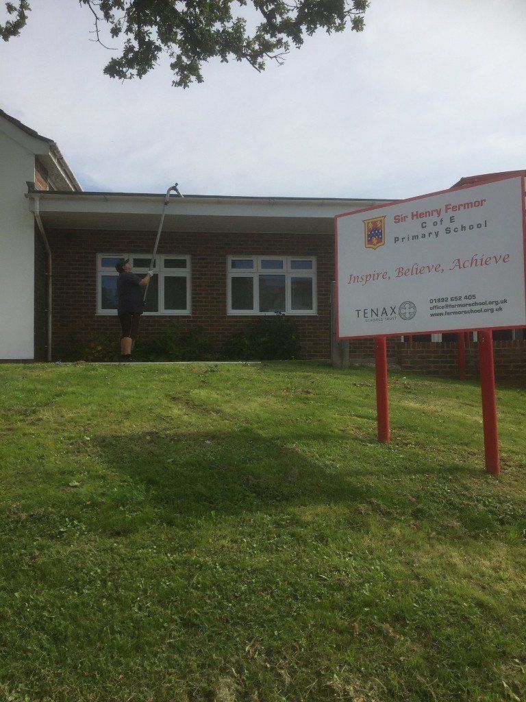 Preventative maintenance to gutters and downpipes at Sir Henry Fermor School, clearing using gutter vacuum system to ensure all clear, including after photos. Several downpipes blocked due to tennis balls, Blocked gutters all clear and flowing ready for the new term, for preventative maintenance call steve on 07379410948
